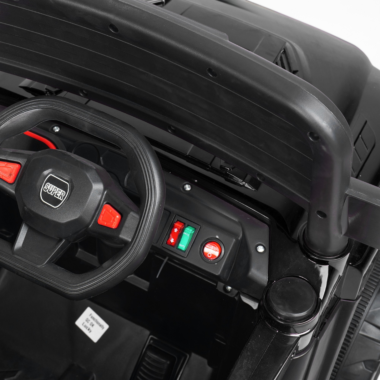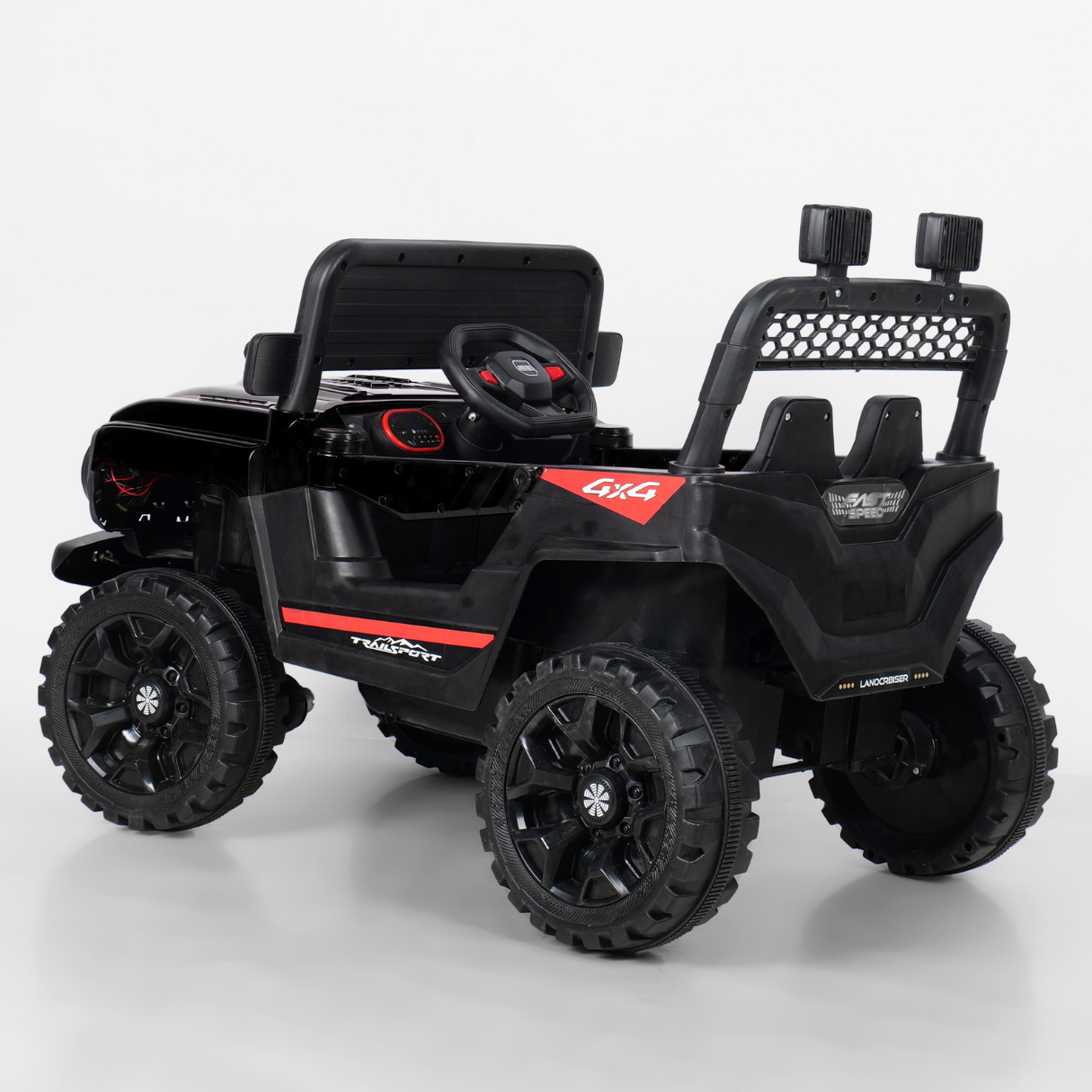 • Dual Control Modes – Remote control or independent driving with accelerator, steering wheel, and forward/backward gear. Powered by 12V battery and 2 motors.
