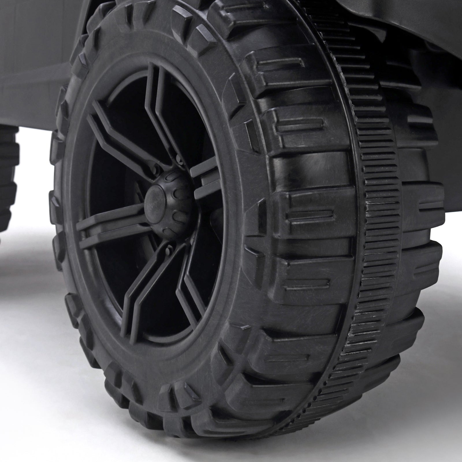 • Dual Control Modes – Remote control or independent driving with accelerator, steering wheel, and forward/backward gear. Powered by 12V battery and 2 motors.