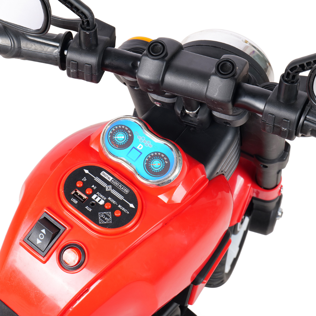 Let your little rider enjoy a thrilling first biking experience with the Kiddy Nation Venom Electric Ride-On Bike. Designed with a bold, sporty look, this mini bike comes with LED headlights, built-in music, and a smooth push-button start that makes riding fun and easy for young kids.